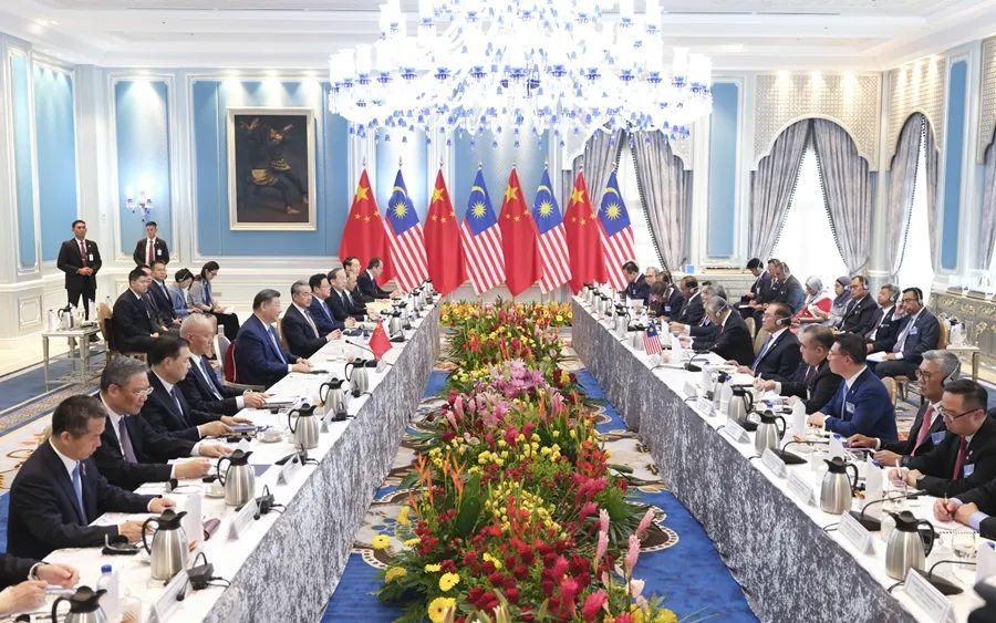 習近平指出,馬方將今年東盟的主題定為“包容性和可持續(xù)性”,體現(xiàn)了對時局的深刻洞察。中方支持馬來西亞發(fā)揮東盟輪值主席國作用,愿同地區(qū)國家一道,盡早簽署中國-東盟自由貿(mào)易區(qū)升級議定書,以開放包容、團結(jié)合作抵制“脫鉤斷鏈”、“小院高墻”和濫征關(guān)稅,以和平、合作、開放、包容的亞洲價值觀回應弱肉強食的叢林法則,以亞洲的穩(wěn)定性和確定性應對世界的不穩(wěn)定和不確定。