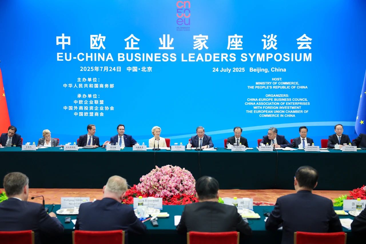國務院總理李強7月24日下午在北京人民大會堂同歐盟委員會主席馮德萊恩共同出席中歐企業(yè)家座談會。近60位中歐商會和企業(yè)負責人出席。