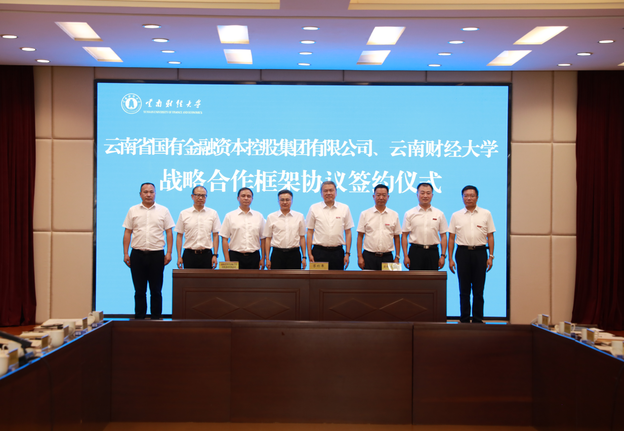云南財經(jīng)大學(xué)黨委副書記施仲軍,黨委委員、副校長余怒濤,黨委委員、紀(jì)委書記業(yè)光遠(yuǎn),黨委委員、組織部長吳應(yīng)利;集團(tuán)黨委副書記、工會主席李根斌,黨委委員、財務(wù)總監(jiān)資云峰以及雙方相關(guān)部門負(fù)責(zé)同志參加座談并見證簽約。