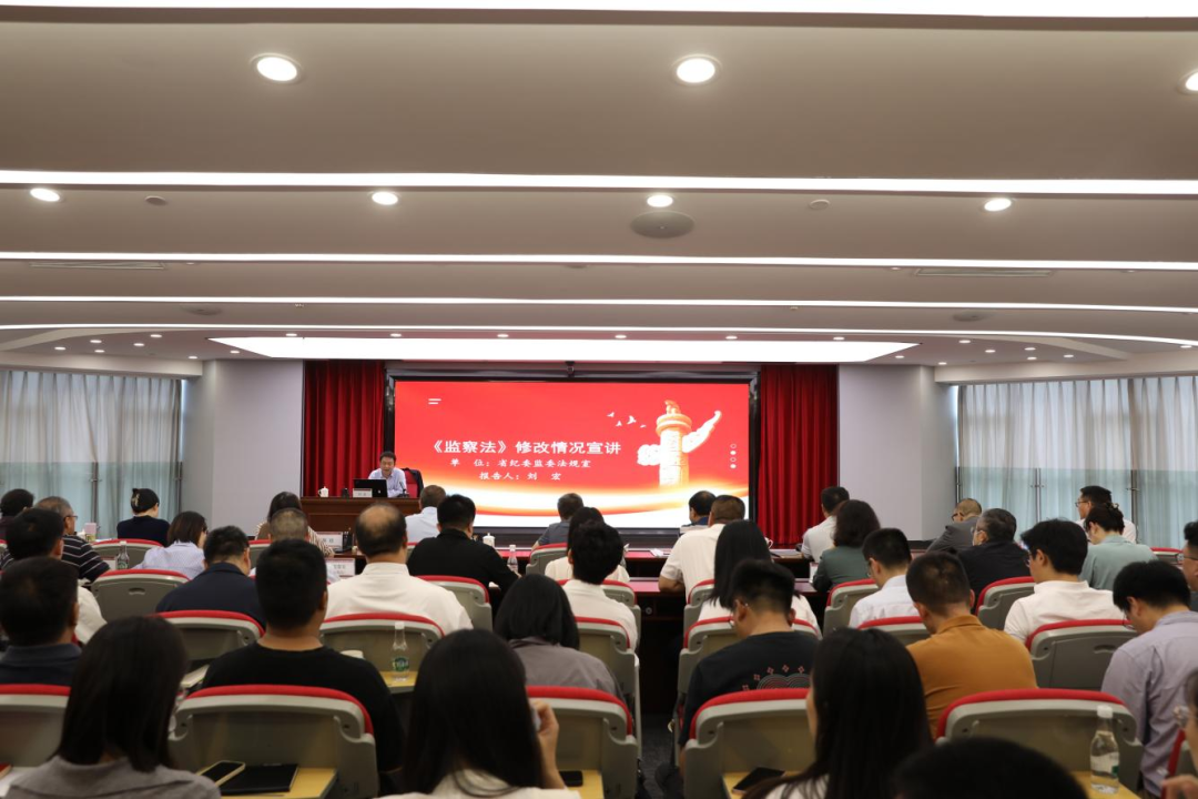 劉宏同志從《監(jiān)察法》修改的背景與意義、《監(jiān)察法》修改遵循的原則、《監(jiān)察法》修改內(nèi)容概述和《監(jiān)察法》修改的具體內(nèi)容等4個方面作了輔導。