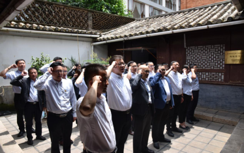 ? ? ? ?全體黨員來(lái)到中共云南地下黨建黨舊址進(jìn)行參觀學(xué)習(xí),伴隨講解員細(xì)致專(zhuān)業(yè)的講解,全體黨員認(rèn)真學(xué)習(xí)了黨在云南最早的地方組織——中國(guó)共產(chǎn)黨云南特別支部的革命歷程,緬懷王德三、李國(guó)柱、吳澄等革命先烈,傳承紅色基因,現(xiàn)場(chǎng)重溫入黨誓詞,面對(duì)黨旗、右手握拳、莊重宣誓。