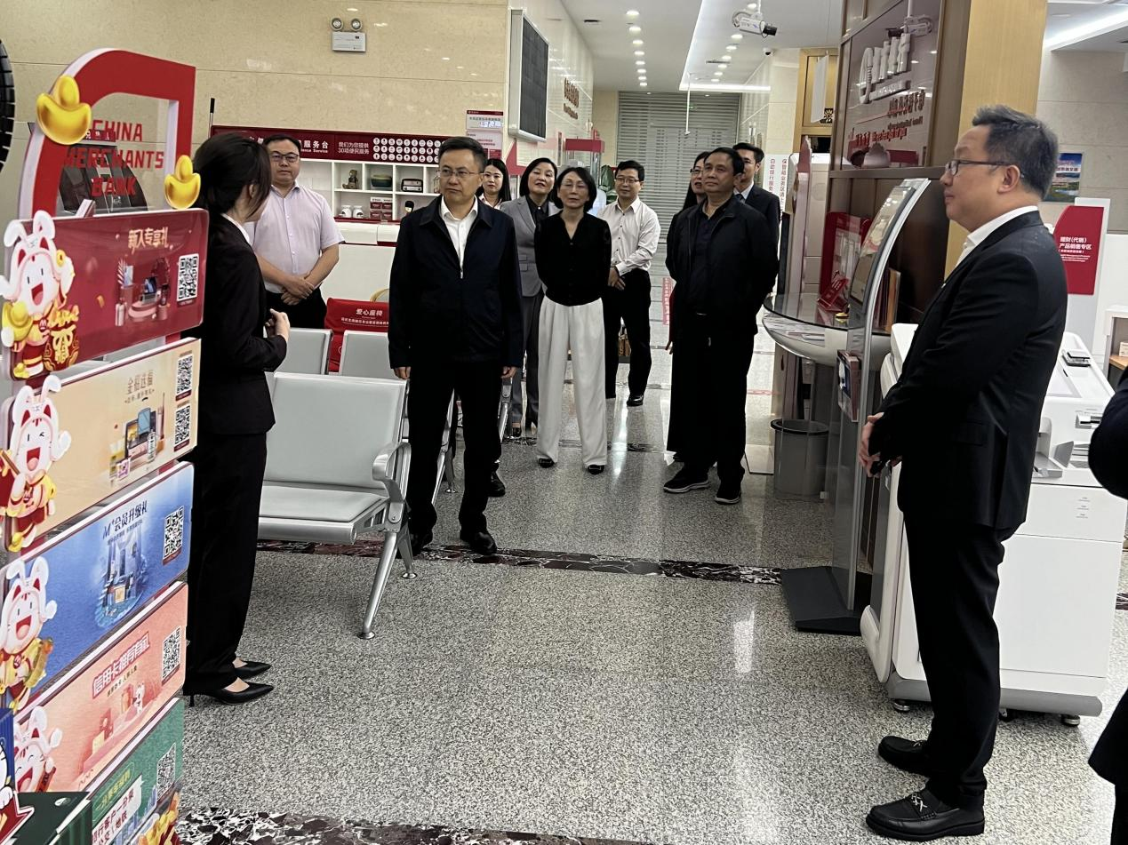 葉智勇總裁一行在招商銀行昆明分行冀華行長(zhǎng)、胡冠軍副行長(zhǎng)等陪同下參觀了招商銀行昆明分行營業(yè)部,實(shí)地了解了招商銀行昆明分行的業(yè)務(wù)開展情況,參觀了招商銀行金融主題教育文化走廊、抓黨建促扶貧等工作進(jìn)展。雙方還圍繞下一步深化合作進(jìn)行了交流。