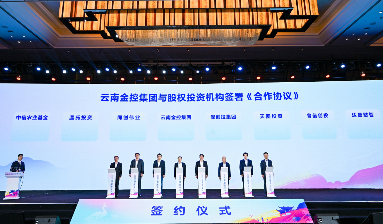 近日,2024云南股權投資大會在昆明順利召開。作為大會重要成果之一,云南金控集團與深創(chuàng)投、達晨財智、同創(chuàng)偉業(yè)、天圖投資、溫氏投資、魯信創(chuàng)投、中信農業(yè)基金7家創(chuàng)投機構簽署《合作協(xié)議》,旨在構建服務云南產業(yè)高質量發(fā)展為核心的基金投資生態(tài)圈,加速我省優(yōu)勢產業(yè)強鏈延鏈補鏈。云南金控集團總裁葉智勇與深創(chuàng)投總裁劉蘇華、同創(chuàng)偉業(yè)創(chuàng)始人鄭偉鶴、天圖投資創(chuàng)始人王永華、溫氏投資總裁趙亮、魯信創(chuàng)投董事長王旭冬、中信農業(yè)基金投委會主席喬百君、達晨財智投資人關系總監(jiān)任翔在大會現(xiàn)場簽約。