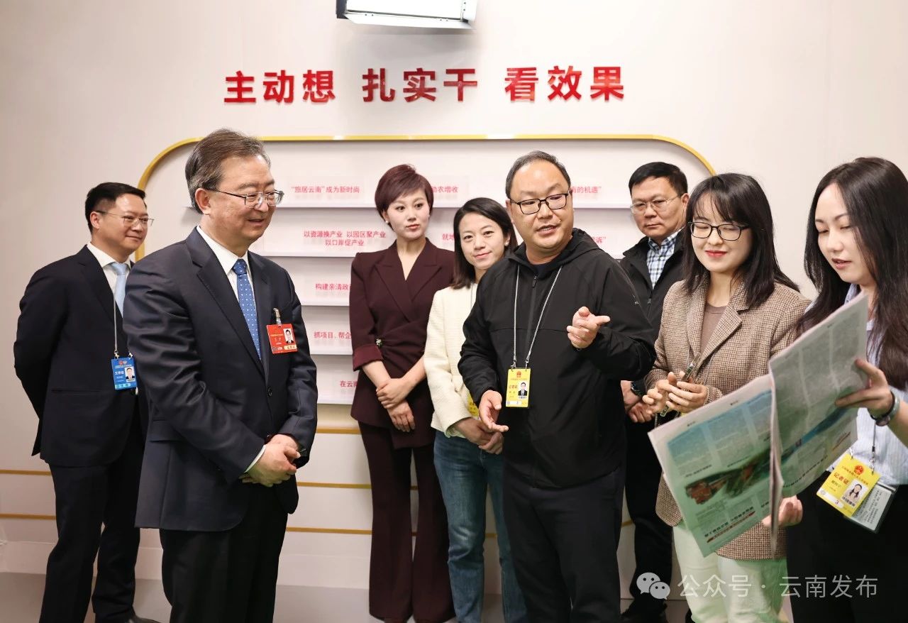 王寧、王予波、石玉鋼等來(lái)到媒體工作間,與人民日?qǐng)?bào)、新華社、中央廣播電視總臺(tái)、光明日?qǐng)?bào)、經(jīng)濟(jì)日?qǐng)?bào)、中新社、法治日?qǐng)?bào)、人民網(wǎng)、云南日?qǐng)?bào)、云南廣播電視臺(tái)等媒體記者親切交流,參觀媒體虛擬演播室,了解新技術(shù)賦能新聞報(bào)道創(chuàng)新等情況,對(duì)各位辛勤奮戰(zhàn)的新聞工作者表示問(wèn)候和感謝。