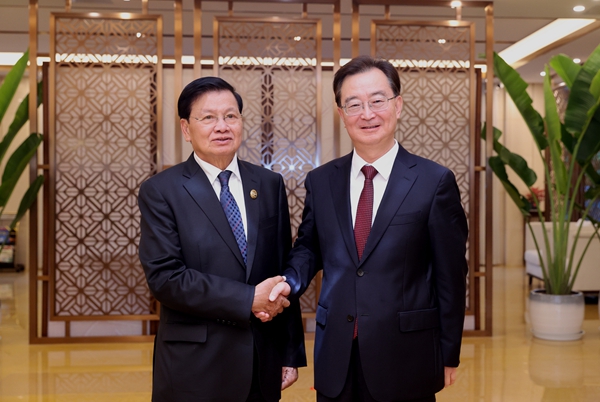 9月4日,王寧在西雙版納州景洪市會(huì)見(jiàn)老撾人民革命黨中央總書記、國(guó)家主席通倫。