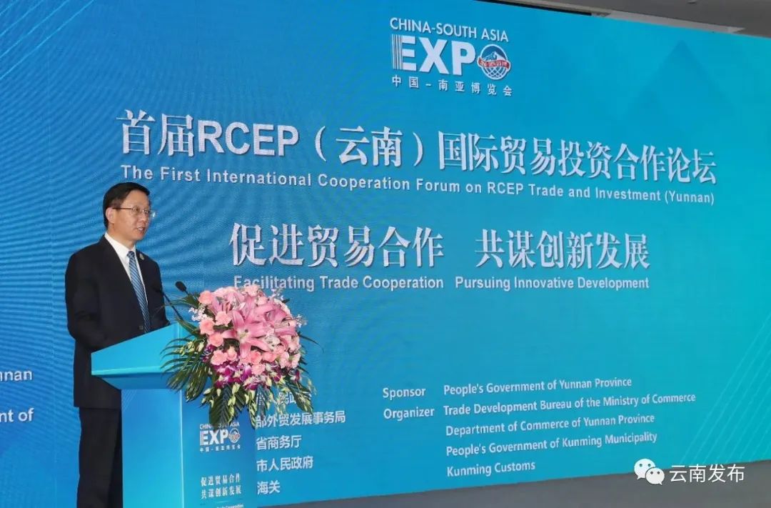 11月19日,以“促進貿(mào)易合作 共謀創(chuàng)新發(fā)展”為主題的首屆RCEP(云南)國際貿(mào)易投資合作論壇在昆明開幕。