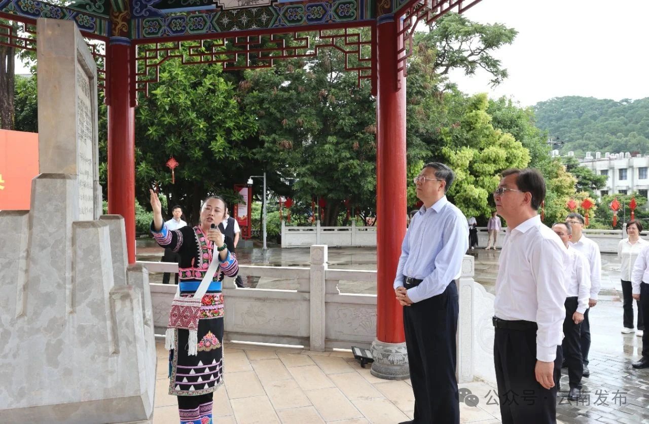 兩地同志一同參觀普洱民族團(tuán)結(jié)誓詞碑。