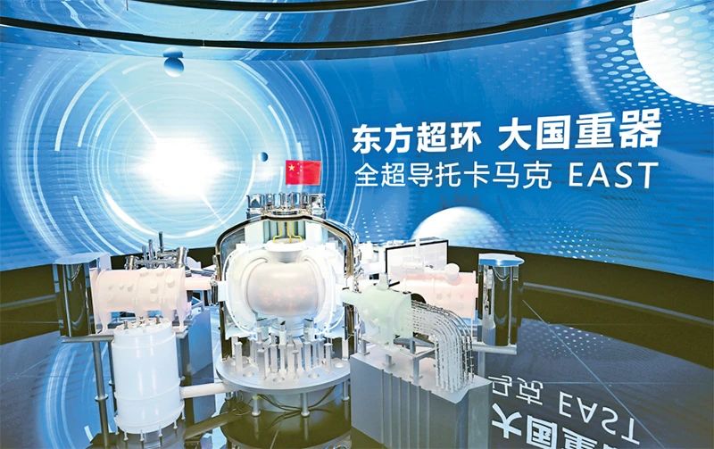2025年1月,我國有“人造太陽”之稱的全超導(dǎo)托卡馬克核聚變實(shí)驗(yàn)裝置(EAST)在安徽合肥創(chuàng)造新的世界紀(jì)錄,首次完成1億攝氏度1000秒“高質(zhì)量燃燒”,標(biāo)志我國聚變能源研究實(shí)現(xiàn)從基礎(chǔ)科學(xué)向工程實(shí)踐的重大跨越。圖為7月1日,在聚變創(chuàng)新展覽館拍攝的全超導(dǎo)托卡馬克核聚變實(shí)驗(yàn)裝置(EAST)模型。 新華社記者 張鋮/攝