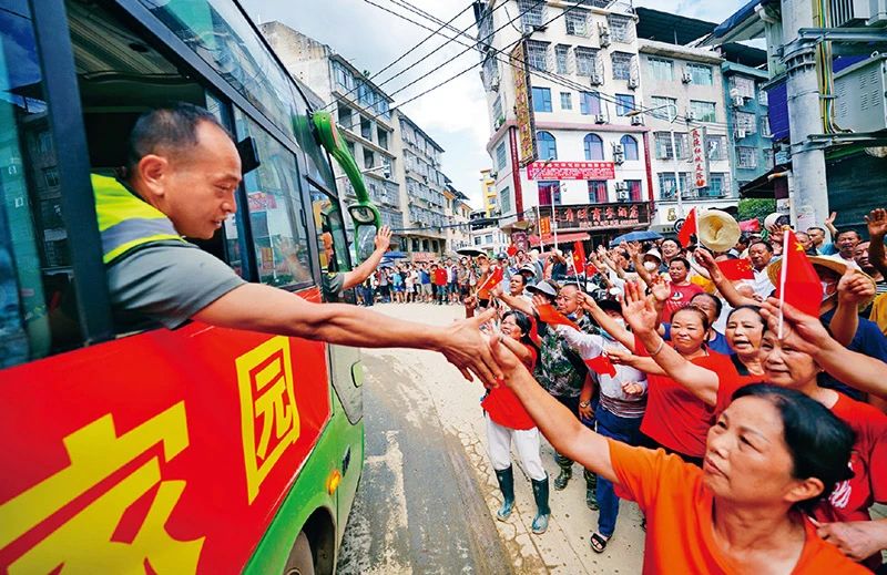黨的十八大以來,中國共產(chǎn)黨人繼承和發(fā)揚黨的優(yōu)良傳統(tǒng)和作風,始終保持同人民群眾的血肉聯(lián)系。近期,貴州省榕江縣發(fā)生特大洪澇災害,黨員干部沖鋒在前,構(gòu)筑起保護群眾、守護家園的堅固防線。圖為2025年7月3日,當?shù)厝罕娮园l(fā)涌上街頭,送別救援隊伍,表達感激之情。 新華社發(fā) 楊武魁/攝