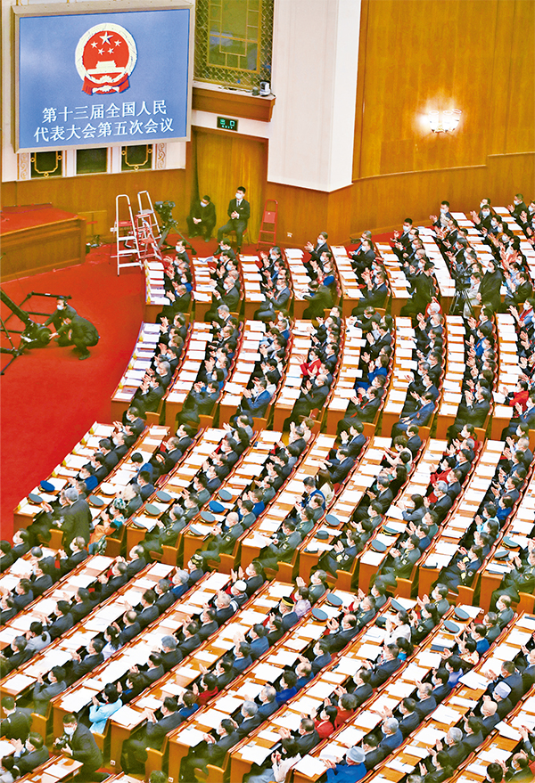 黨的十八大以來(lái),人民代表大會(huì)制度不斷完善。圖為2022年3月8日,十三屆全國(guó)人大五次會(huì)議在北京人民大會(huì)堂舉行第二次全體會(huì)議?!⌒氯A社記者 金立旺/攝