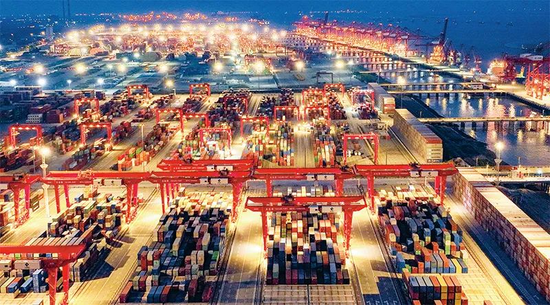 港口是高水平對(duì)外開(kāi)放的窗口。圖為2022年11月5日,江蘇太倉(cāng)港集裝箱碼頭燈火通明。2022年1月至10月,江蘇太倉(cāng)港累計(jì)完成集裝箱吞吐量665萬(wàn)標(biāo)箱,同比增長(zhǎng)16.1%。 人民圖片 袁新宇/攝