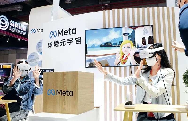 中國(guó)國(guó)際進(jìn)口博覽會(huì)連續(xù)舉辦5年,已經(jīng)成為中國(guó)構(gòu)建新發(fā)展格局的窗口、推動(dòng)高水平開(kāi)放的平臺(tái)、全球共享的國(guó)際公共產(chǎn)品。圖為2022年11月7日,在第五屆進(jìn)博會(huì)技術(shù)裝備展區(qū)的人工智能專(zhuān)區(qū),體驗(yàn)者借助VR頭戴設(shè)備感受在虛擬工作空間“隔空擊掌”。 新華社記者 侯俊/攝