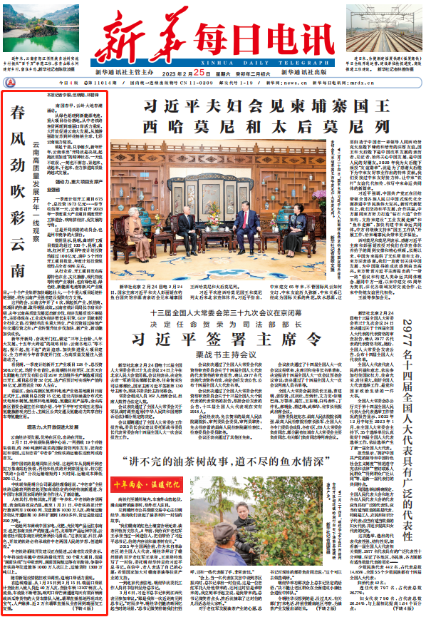 《新華每日電訊》頭版聚焦云南