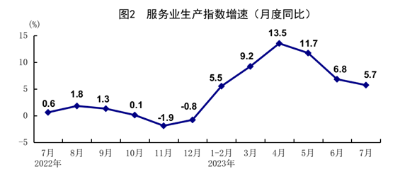 7月份,全國(guó)服務(wù)業(yè)生產(chǎn)指數(shù)同比增長(zhǎng)5.7%。分行業(yè)看,住宿和餐飲業(yè),信息傳輸、軟件和信息技術(shù)服務(wù)業(yè),金融業(yè),交通運(yùn)輸、倉(cāng)儲(chǔ)和郵政業(yè)生產(chǎn)指數(shù)同比分別增長(zhǎng)20.0%、11.2%、7.6%、7.3%。1-7月份,全國(guó)服務(wù)業(yè)生產(chǎn)指數(shù)同比增長(zhǎng)8.3%。1-6月份,規(guī)模以上服務(wù)業(yè)企業(yè)營(yíng)業(yè)收入同比增長(zhǎng)7.5%。7月份,服務(wù)業(yè)商務(wù)活動(dòng)指數(shù)為51.5%,業(yè)務(wù)活動(dòng)預(yù)期指數(shù)為58.7%,其中,航空運(yùn)輸、郵政快遞、電信廣播電視及衛(wèi)星傳輸服務(wù)、互聯(lián)網(wǎng)軟件及信息技術(shù)服務(wù)等行業(yè)商務(wù)活動(dòng)指數(shù)位于60%以上高位景氣區(qū)間。