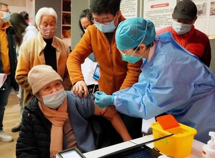 ?12月9日,在上海市黃浦區(qū)打浦橋街道大同居委會(huì),接種小分隊(duì)的護(hù)士在為老年人接種新冠疫苗。新華社記者 劉穎 攝