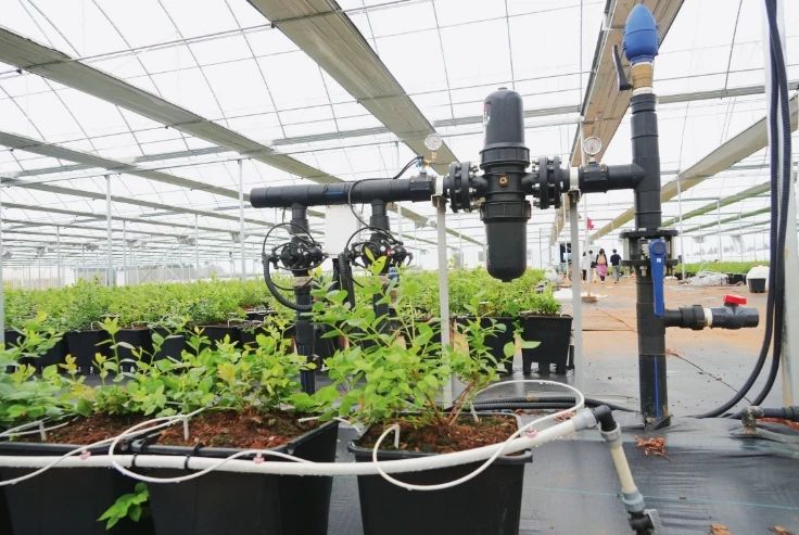 園區(qū)打造了省內(nèi)領(lǐng)先的水肥一體化灌溉中心,引入全省首臺(tái)以色列5G智能施肥系統(tǒng),并配套兩臺(tái)4G施肥系統(tǒng),實(shí)現(xiàn)對(duì)約500畝藍(lán)莓基地的遠(yuǎn)程精準(zhǔn)水肥管控。通過(guò)智能監(jiān)測(cè)與動(dòng)態(tài)調(diào)配,確保藍(lán)莓生長(zhǎng)各階段精準(zhǔn)攝入所需營(yíng)養(yǎng),有效促進(jìn)花芽發(fā)育與果實(shí)飽滿度提升,為高品質(zhì)產(chǎn)出提供核心技術(shù)支撐。自主開(kāi)發(fā)光纖通信和物聯(lián)網(wǎng)智慧農(nóng)業(yè)平臺(tái),空氣成分、風(fēng)力、溫度、濕度、pH值等數(shù)據(jù)通過(guò)傳感器接入平臺(tái),平臺(tái)根據(jù)數(shù)據(jù)設(shè)定情況自主開(kāi)關(guān)大棚通風(fēng)系統(tǒng)、遮陽(yáng)系統(tǒng)、水肥灌溉等。