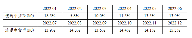 注4:自2022年12月起,“流通中貨幣(M0)”含流通中數(shù)字人民幣。12月末流通中數(shù)字人民幣余額為136.1億元。修訂后,2022年各月末M1、M2增速無(wú)明顯變化。修訂后M0增速如下:
