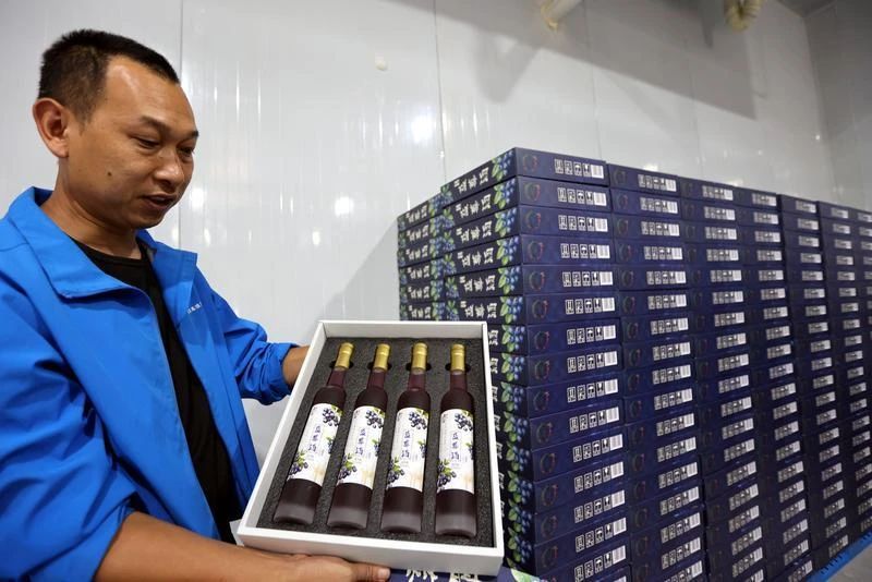 蒙自飛花釀果酒廠生產(chǎn)的藍(lán)莓果酒。黃興能 攝