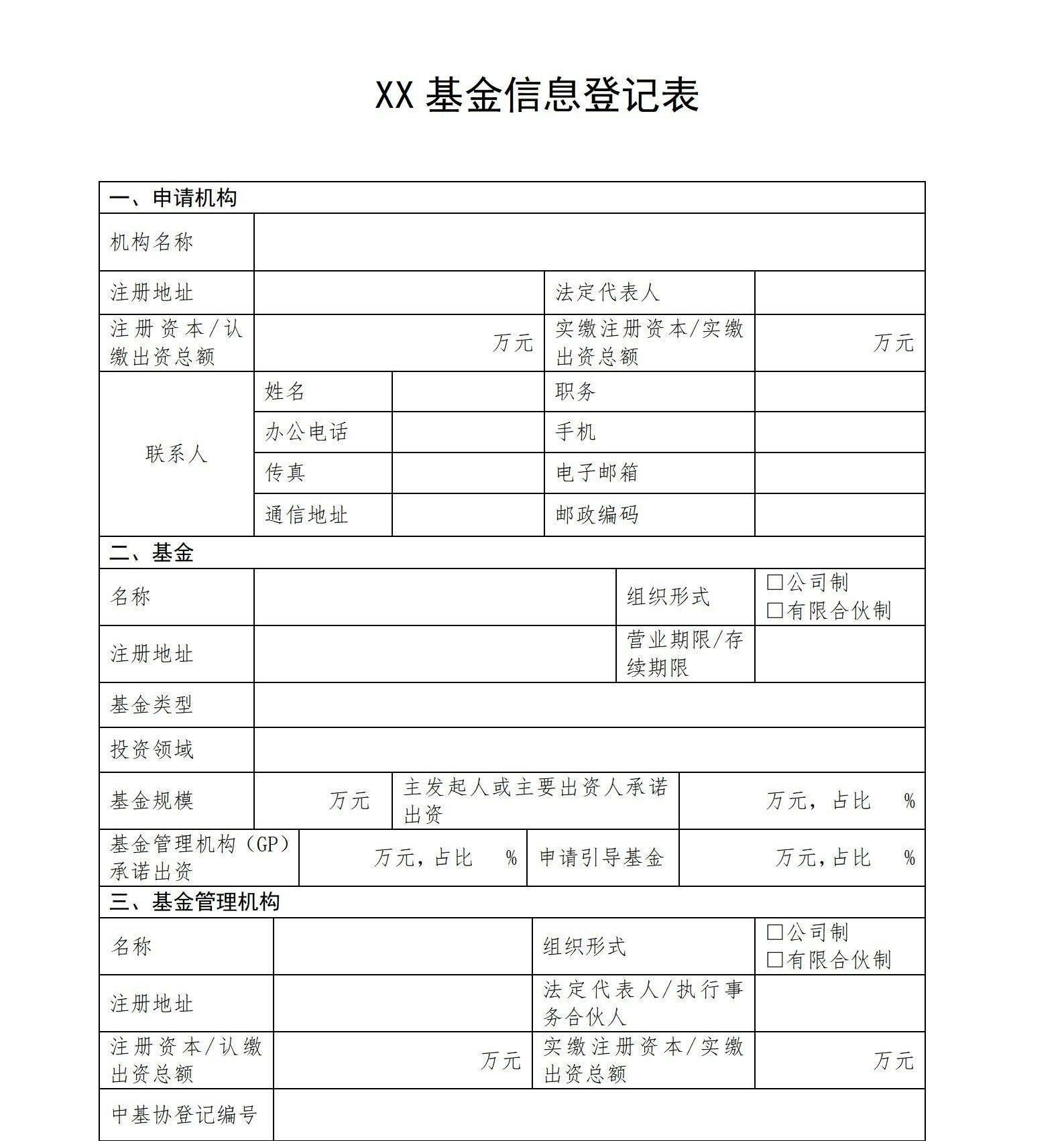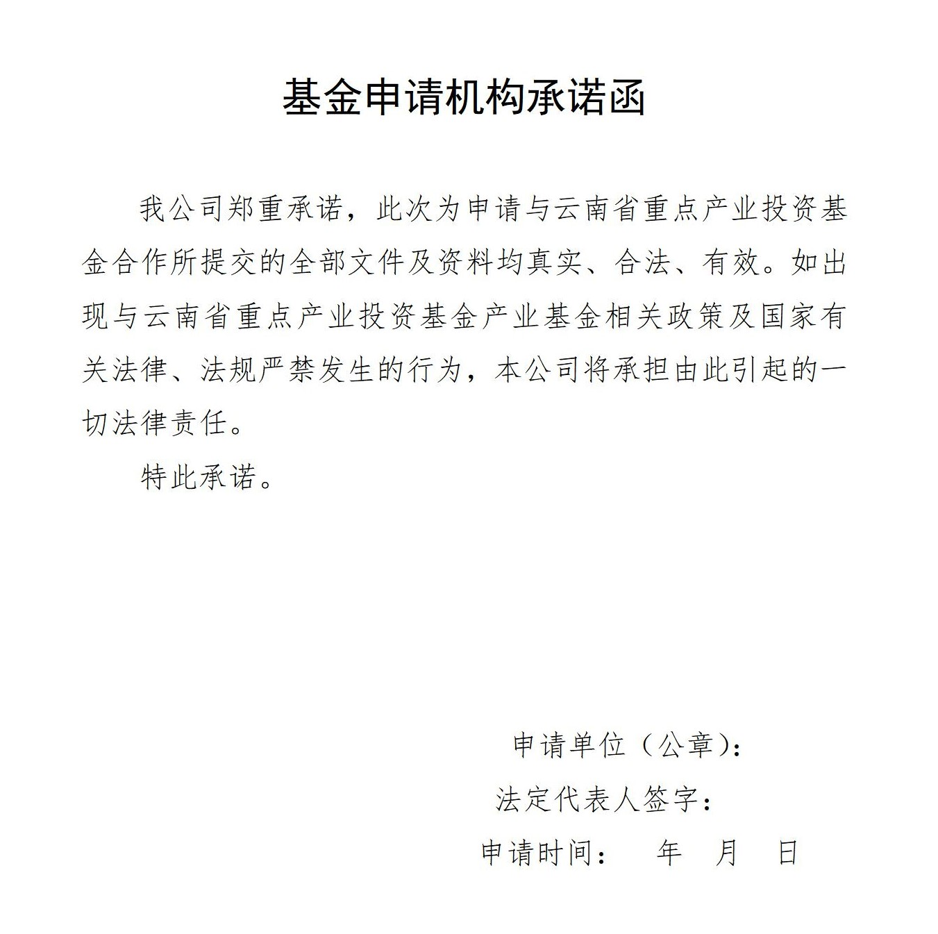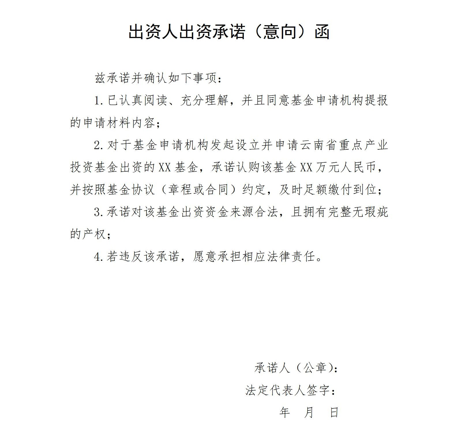 ? ? ??(二)申報(bào)事項(xiàng)。各行業(yè)主管部門、地方政府按照《產(chǎn)業(yè)基金申報(bào)指南》(見(jiàn)附件)的要求,向云南金控集團(tuán)或其指定的省重點(diǎn)基金管理人提交申報(bào)設(shè)立產(chǎn)業(yè)基金文件,包括產(chǎn)業(yè)基金設(shè)立方案、基金管理人情況、基金章程或協(xié)議草案、出資人出資意向及出資能力證明等相關(guān)材料。